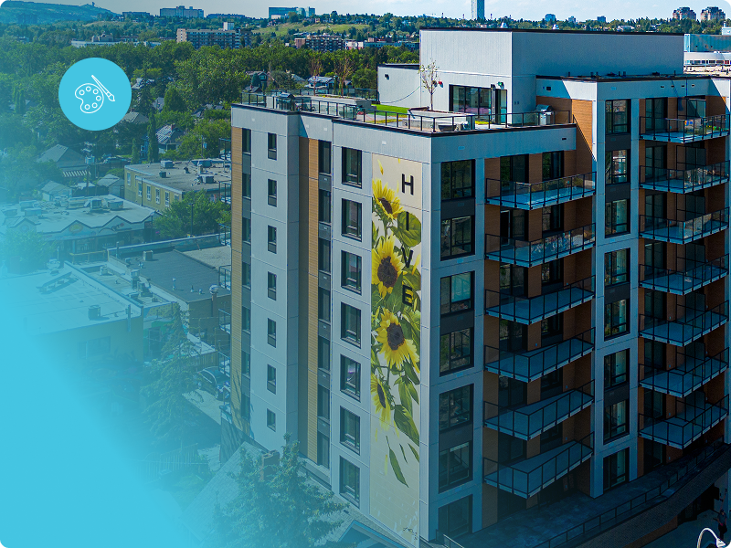 A boutique 140 suite rental development in an artsy, sophisticated community. Hive brings people together through colour, creativity and connection.