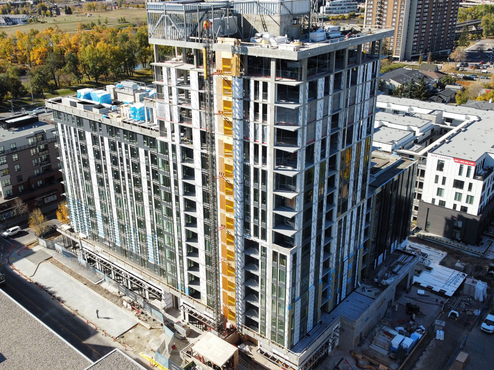 Site works is wrapping up for the 2021 season, while exterior work is ongoing and will continue into early 2022. Windows will be completely installed by mid-November. Exterior brick work is well underway. Suite finishes are progressing through to Level 10.